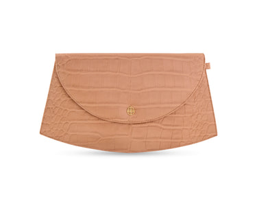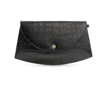 A refined envelope clutch in textured leather and jacquard or in canvas, balancing structure and softness with timeless ease.